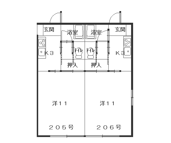 | 間 取 り | 1K | 主 要 居 室 | 洋11・K3 |